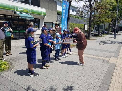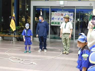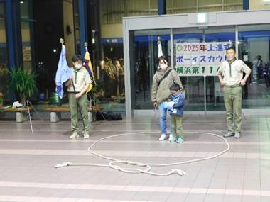 2025年度のみなと地区ラリーは残念ながら生憎の空模様でビーバー隊カブ隊部門は中止となり、ボーイ隊 部門だけの開催となりました。殆どのスカウトが試験等と重なりMスカウト1名だけ参加でしたがそれでも与えられた課題をクリアしました。当団新野営地にも大勢の人があつまり大賑わいでした。2025地区ラリー☆彡☆彡☆彡☆彡☆彡☆彡☆彡☆彡☆彡☆彡☆彡☆彡☆彡☆彡☆彡☆彡☆彡☆彡☆彡☆彡☆彡☆彡☆Ø 2025年11月2日:栄区民まつり参加 Ø 場所:警察学校グランド 近隣団(96団、99団、116団)で栄区民まつりに的あて(弓矢)と工作(タッチーくん)で参加。今年は警察学校グランドで開催。秋晴れのいい天気でたくさんのお客さんに体験して頂きボーイスカウトのPRが出来ました。リーダーに加えカブスカウト2名の支援もあり、大助かりの充実した1日でした。 栄区民まつりアルバム☆彡☆彡☆彡☆彡☆彡☆彡☆彡☆彡☆彡☆彡☆彡☆彡☆彡☆彡☆彡☆彡☆彡☆彡☆彡☆彡☆彡☆彡☆Ø 2025年10月26日(日):横浜マラソン第14給水所支援 Ø 場所:首都高三渓園出口付近 今年もBS隊スカウト9名、指導者4名計13名で参加。雨模様と早朝集合で大変だったが大声でランナーに声援と給水で元気づけました。 準備から給水、片付けまでスカウトの連携プレーで素晴らしく難なく実施出来ました。ランナーが走っている間は写真厳禁で雰囲気は次回でも現場で是非味わって下さい。横浜マラソン第14給水所支援☆彡☆彡☆彡☆彡☆彡☆彡☆彡☆彡☆彡☆彡☆彡☆彡☆彡☆彡☆彡☆彡☆彡☆彡☆彡☆彡☆彡☆彡☆Ø 2025年10月25日(土):駅前egaoフェスタ Ø 場所:本郷台駅前公園 駅前egaoフェスタに「的あて」と「触ってあてよう」で参加。生憎の雨模様と気温低下で他の食品関係のお店なども含め客足激減。両ゲーム併せて延べ100人位が体験(例年の1割位)。リーフレットなども渡し、興味を持って頂いた数家族には詳しい内容を説明し資料を渡した。それなりの成果はあったかと思う。駅前egaoフェスタ☆彡☆彡☆彡☆彡☆彡☆彡☆彡☆彡☆彡☆彡☆彡☆彡☆彡☆彡☆彡☆彡☆彡☆彡☆彡☆彡☆彡☆彡☆Ø 2025年10月18日(土):JOTA/JOTI参加 Ø 場所:スカウト会館 JOTA/JOTIにカブ隊で参加しました。今回参加したのはYSKのグループ活動に便乗参加。インドネシア・ マレーシア・アメリカ・カナダの4か国と交流出来ました。又クイズなどで世界の国々について学習出来ました。ランチではロングロールサンド作り。ワッペンなどももらえ、楽しい時間を過ごしました。カブ隊JOTA/JOTI ☆彡☆彡☆彡☆彡☆彡☆彡☆彡☆彡☆彡☆彡☆彡☆彡☆彡☆彡☆彡☆彡☆彡☆彡☆彡☆彡☆彡☆彡☆Ø 2025年10月12日(日):わくわく自然体験 ボーイスカウトと遊ぼう! Ø 場所:舞岡公園 各広場、舞岡野営地 児童36名が参加しBVS、CSで合計59名が5班の班編成で公園内の5カ所(6ポイント)を体験。ペットボトルロケット、テント体験、紙ブーメラン作り、的あて、BS隊のマシュマロ焼き&ポップコーンを班毎に順次体験。参加児童は体験したことのないような遊びで楽しんでいきました。全員集合↑(諸般の理由で横アングル) ボーイスカウトと遊ぼう!アルバム👀 ☆彡☆彡☆彡☆彡☆彡☆彡☆彡☆彡☆彡☆彡☆彡☆彡☆彡☆彡☆彡☆彡☆彡☆彡☆彡☆彡☆彡☆彡☆