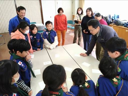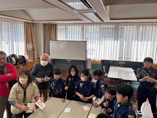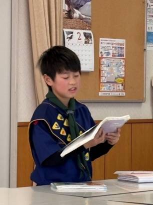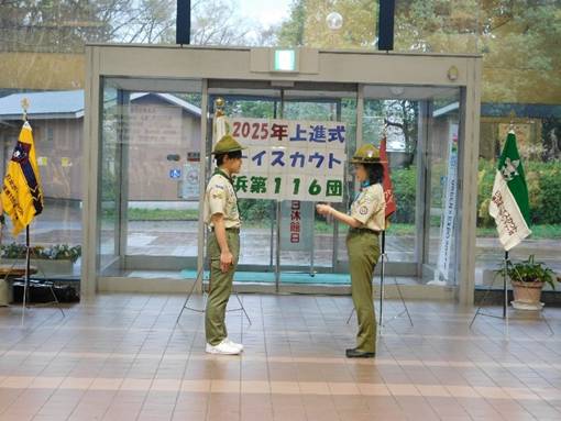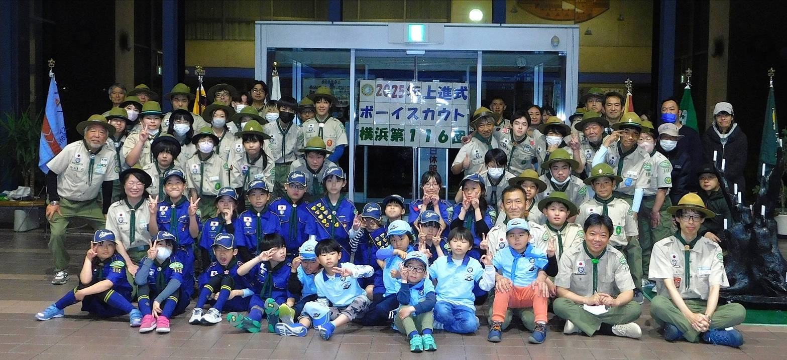 2025年5月11日:芝崎海岸磯遊び Ø 場所:葉山芝崎海岸 5月11日カブ隊は葉山町の芝崎海岸へ磯遊びに出掛けました。暑くも寒くもない丁度よい気候で、自然と たっぷり触れ合うことが出来ました。また組対抗ネイチャービンゴを行い、時間を忘れて皆協力して取り組みました。新しい組の仲間ともすっかり仲良くなってきて、これからの活動も楽しみですね。磯遊びアルバム ⇐👀 ☆彡☆彡☆彡☆彡☆彡☆彡☆彡☆彡☆彡☆彡☆彡☆彡☆彡☆彡☆彡☆彡☆彡☆彡☆彡☆彡☆彡☆彡☆² 2025年5月3日:ザよこはまパレード カブ隊旗パレード ² 場所:山下公園〜伊勢佐木町の3.4Km 毎年行われる横浜市の大イベント「みなとまつり ザよこはまパレード」が開催されました。そのなかで横浜地区みなと地区のカブスカウトによるカブ隊の隊旗パレードがあり、116団からスカウト1名が参加し立派な行進を行いました。カブ隊旗パレードアルバム←👀 ☆彡☆彡☆彡☆彡☆彡☆彡☆彡☆彡☆彡☆彡☆彡☆彡☆彡☆彡☆彡☆彡☆彡☆彡☆彡☆彡☆彡☆彡☆² 2025年4月29日:ミャンマー地震災害、大船渡森林火災義援金募金活動 ² 場所:本郷台駅前周辺3ケ所 ミャンマー地震災害、大船渡森林火災被害の義援金募金活動を行いました。募金前に上進式で出来なかったビーバー隊の入隊式を行いました。募金ではたくさんの方から募金を頂き、多くの募金が集まり、募金の集計は2件の箱毎にし、恒例になったBS隊のスカウトにやってもらいました。その結果、合計で72,861円となりました。後日日本赤十字社のそれぞれに送金します。追記)ゆうちょ銀行にて機械集計の結果+1円の72,862円でした🥰 @ ミャンマー地震:33,601円(+1円)A大船渡森林火災:39,261円(OK)でそれぞれに送金しました。 ---募金活動アルバム ⇐👀 ☆彡☆彡☆彡☆彡☆彡☆彡☆彡☆彡☆彡☆彡☆彡☆彡☆彡☆彡☆彡☆彡☆彡☆彡☆彡☆彡☆彡☆彡☆² 2025年4月26、27日:ボーイ隊ファーストキャンプ ² 場所:千秀センター ボーイ隊では4月26日〜27日に新体制での1stキャンプを千秀センターキャンプ場で行いました。新BSを迎え初めての隊キャンプで先輩スカウトが後輩スカウトにキャンプの楽しさ、その他色々な事を教えることができ、良いキャンプでした。BS隊1stキャンプ ←👀 ☆彡☆彡☆彡☆彡☆彡☆彡☆彡☆彡☆彡☆彡☆彡☆彡☆彡☆彡☆彡☆彡☆彡☆彡☆彡☆彡☆彡☆彡☆² 2025年4月20日:ビーバー隊アスレチック体験 ² 場所:藤沢市少年の森 ビーバー隊では藤沢にある藤沢市少年の森に行きました。ここには色々な施設がたくさんあり、その中のアスレチック体験などで遊んできました。アスレチック体験アルバム ←👀 ☆彡☆彡☆彡☆彡☆彡☆彡☆彡☆彡☆彡☆彡☆彡☆彡☆彡☆彡☆彡☆彡☆彡☆彡☆彡☆彡☆彡☆彡☆² 2025年3月29〜30日:上進式〜ちかいの儀 ² 場所:野島青少年研修センター 野島で2025年度の上進式、ちかいの儀を行いました。上進式はキャンプ場での予定でしたがあいにくの雨模様でビジターホールで上進式とちかいの儀を続けて開催しました。上進式〜ちかいの儀で全員集合!1) 【入所式〜表彰式】 まず各表彰式を行い、カブ隊の表彰、ボーイ隊1級章授与、ベンチャースカウトへの菊章が小暮地区コミから授与、スキー検定、特別年功章授与などありました。入所式〜表彰式 ←👀 2) 【上進式】 そして上進式では各隊指導者の紹介のあとカブ隊へ6人、ボーイ隊へ3人、ベンチャー隊へ1名、ローバー隊へ1名(欠)がロープを飛越え上進しました。上進式 ←👀 3)【入隊式〜ちかいの儀】 新たにビーバー隊に2名(1名欠)とカブ隊に1名の計3名の入団があり、入隊式を行いました。そしてちかいの儀本番、上進したスカウト全員と新しくリーダーになったひとがちかいを立てました。入隊式〜ちかいの儀 ←👀 4)【3/30(日)朝礼〜】 上進者を迎え新たな朝で朝礼を行いました。各隊新体制で桜の木の下で集合写真を撮りました。朝礼〜新たな朝 ←👀 ☆彡☆彡☆彡☆彡☆彡☆彡☆彡☆彡☆彡☆彡☆彡☆彡☆彡☆彡☆彡☆彡☆彡☆彡☆彡☆彡☆彡☆彡☆² 2025年3月23日:カブ隊お別れ組集会 ² 場所:1組くりはま花の国、2組小菅ケ谷地域ケアプラザ カブ隊は最後の組活動をしました。組ごとに話し合い計画書を作成。計画書に基づき1組はくりはま花の国へハイキング、2組は小菅ケ谷地域ケアプラザでたこ焼きとクッキーを作りみんなで食べました。本郷台駅に集合し、最後のセレモニー。最後に元気よく「仲良しの輪」で今年度を締めくくりました。◆1組:くりはま花の国1組くりはま花の国 ←👀 ◆2組:たこ焼きとクッキーを作り2組たこ焼きとクッキーを作り ←👀 ☆彡☆彡☆彡☆彡☆彡☆彡☆彡☆彡☆彡☆彡☆彡☆彡☆彡☆彡☆彡☆彡☆彡☆彡☆彡☆彡☆彡☆彡☆² 2025年3月23日:ボーイ隊1級団面接 ² 場所:あーすプラザ研修室B 3月23日にボーイ隊では、あーすプラザ研修室で中1女子スカウトの1級団面接を行いました。数々の課題 をクリアし、同期スカウトで最初となりました。 初級、2級、1級と目に見えて進